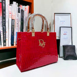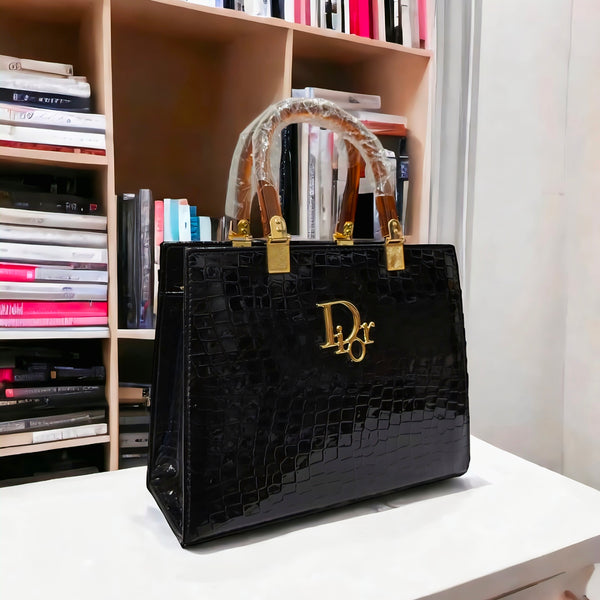 Luxury Croc - Texture Handbag - Dior-Inspired Elegant And Sophisticated, This Structured Handbag Features A Premium Croc-Textured Finish With Gold- Tone Hardware And A Dior-Inspired Logo For A Luxurious Touch....